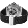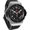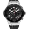 Diameter: 41 mm. Thickness: 12.75 mm. Satin-finished and polished stainless steel. Polished black ceramic bezel secured with 6 H-shaped titanium screws. Polished stainless steel and sapphire crystal case back. Water resistant to 100 meters.Dial: Stamped “carbon effect”. Sapphire crystal with anti-reflective treatment.Movement: Self-winding. Calibre HUB 4300. Power reserve of 42 hours. Hublot design tungsten openwork rotor oscillating weight. Swiss lever escapement. 278 components. 37 jewels. Frequency: 4 Hz, 28.800 vibrations per hour. Bracelet: |
