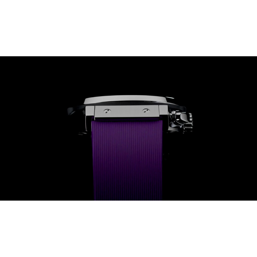 Strap: Black rubber with purple lining, titanium deployant clasp.
