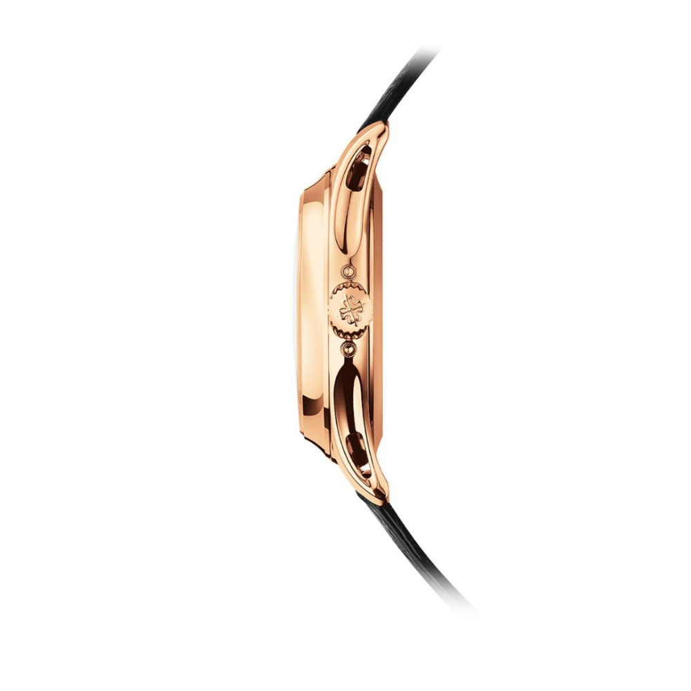 Strap: Hand-stitched black alligator leather with rose gold pin buckle