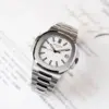 The Patek Philippe Nautilus 5711/1A-011 is a rare and highly sought-after luxury sports watch, celebrated for its clean, minimalist design and timeless elegance. This 2017 edition features a 40mm stainless steel case with a classic silvery white dial, setting it apart from the more common blue-dial version.