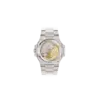 Crafted entirely in 18k white gold, this 41mm case retains the Nautilus’ signature rounded octagonal bezel and integrated bracelet, now with a two-part case construction inspired by earlier generations.