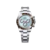 Its distinctive ice-blue dial with contrasting brown sub-dials delivers excellent legibility and unique visual appeal. The chestnut brown Cerachrom ceramic bezel with engraved tachymetric scale adds both durability and functionality, enabling accurate speed measurement. Completing the design, the solid platinum Oyster bracelet ensures strength, comfort, and an elegant finish.