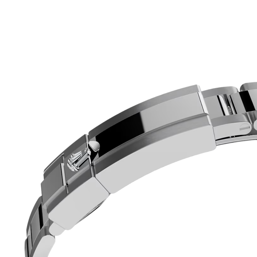 Bracelet: Oyster bracelet in platinum tone, flat three-piece links, equipped with Oysterlock safety clasp and Easylink extension