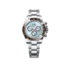 The Rolex Cosmograph Daytona Ref. 126506-0001 is a striking chronograph that unites luxury materials with motorsport-inspired design. Featuring a 40 mm case crafted from platinum tone and paired with an ice-blue dial and chestnut brown ceramic bezel, the watch embodies both technical performance and refined aesthetics. Its distinctive color palette highlights the exclusivity of this variant, while the robust Oyster bracelet ensures enduring comfort and balance on the wrist. Designed for precision timing, it remains one of the most recognizable chronographs in modern watch culture.