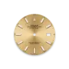 Its refined champagne sunray dial features classic luminous baton hour markers and Rolex’s signature Cyclops lens magnifying the date at 3 o’clock. Framed by the unmistakable fluted bezel in 18k yellow gold, the watch captures light with every movement — offering subtle brilliance without excess.