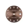 Chocolate dial with diamond markers and Roman IX set with diamonds