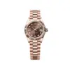 The Rolex Lady-Datejust Everose Gold Ref# 279175-0002 exudes graceful elegance, featuring a chocolate diamond-set dial, a signature fluted bezel, and the prestigious President bracelet. This refined timepiece perfectly blends classic design, high-precision engineering, and luxurious materials, making it a quintessential choice for women who value sophistication and timeless beauty.