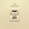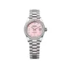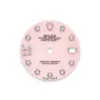 The pink opal dial is crafted from rare decorative stone, each cut and polished to meet Rolex’s exacting standards. Its natural variations ensure every dial is unique. The diamond hour markers and Roman IX set with 8 diamonds add brilliance and sophistication, perfectly complementing the soft hue of the opal.