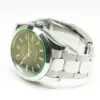 Case: 40mm Oystersteel; polished smooth bezel; green sapphire crystal; waterproof to 100m