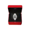 Crafted from polished and satin-brushed stainless steel, the 39.8 mm square case features Cartier’s signature exposed screws, beveled edges, and seamless proportions that sit comfortably on the wrist. At the heart of the watch lies a skeletonized manual-winding movement—Calibre 9611 MC—which not only powers the watch with an impressive 72-hour power reserve, but also forms the dial itself through open-worked bridges shaped as bold Roman numerals.