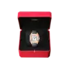 With its sleek square case, softly curved lugs, and iconic exposed screws, the design remains faithful to the original while exuding modern sophistication. The medium size case, measuring 35.1 mm x 41.9 mm, offers the perfect balance between bold presence and comfortable wear, making it ideal for both men and women with a taste for classic refinement.