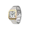 The Santos de Cartier XL Chronograph Steel & 18ct Yellow Gold Watch is a bold reimagining of Cartier’s iconic aviation timepiece, now fused with chronograph functionality for the modern gentleman. With its luxurious combination of stainless steel and 18ct yellow gold, this XL model commands attention, blending sporty precision with refined elegance.